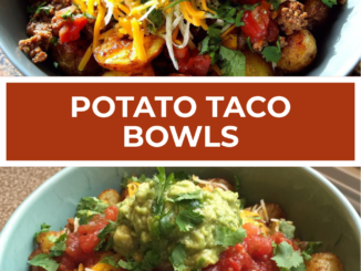 Potato taco bowls with roasted potatoes and taco toppings. #Potato #Taco #Bowls