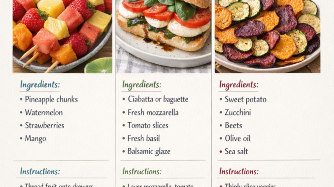 Enjoy these 3 easy beach snack recipes perfect for sunny days—fresh tropical fruit skewers, a light caprese sandwich, and crispy veggie chips. Simple, refreshing, and travel-friendly snacks everyone will love. 🥨🍟cook smarter, not harder. Check out the must have kitchen essentials now.