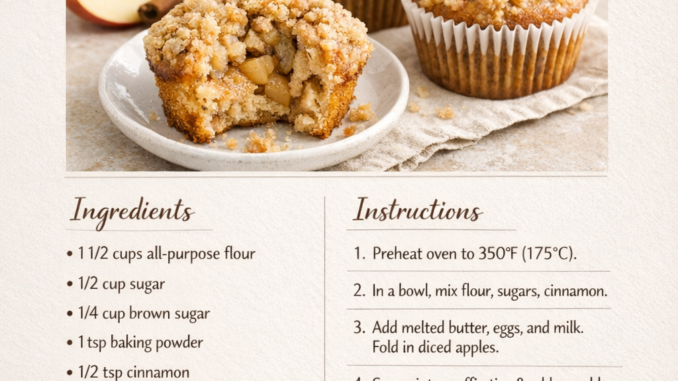 Soft and fluffy apple crumble muffins with a buttery crunchy topping—perfect for cozy mornings and easy baking days. Bake smarter, not harder! Check out the must-have baking essentials now. fall dessert recipes, fall dessert, dessert recipes, dessert recipes easy, dinner ideas, dinner recipes, dinner recipes for family, dinner ideas easy, lunch ideas, lunch recipes, breakfast ideas, breakfast recipes, cooking recipes, recipes for dinner, cooking ideas, healthy dinner recipes, healthy recipes, healthy lunch ideas, healthy meals, healthy fall baking, healthy eating, that girl, that girl aesthetic, that girl routine, friday blessings, friday night dinner ideas, baking ideas, autumn #applemuffins