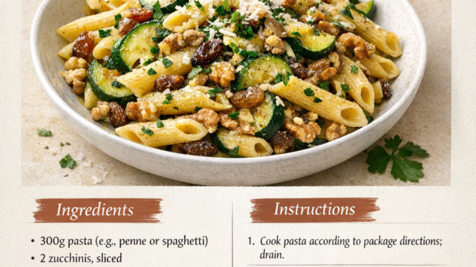 #Pasta #Zucchini #Raisins #Walnuts #Recipe #Easy #Vegetarian #Dinner #Idea
